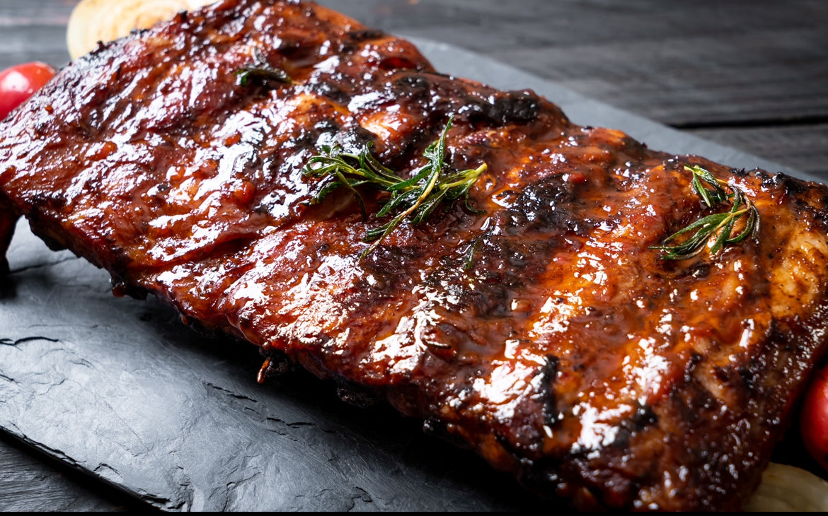 St.Louis cut pork racks, sources from outdoor- reared pigs, offer premium ribs with a distinctive square shape and meatiness, sources from ethical, sustainable farming practices.
